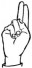 На ћирилици написано МАРИЈА МЕЧАНИН састоји се из 13 слова [?]. Исписано ћириличном једноручном азбуком за глувонеме: